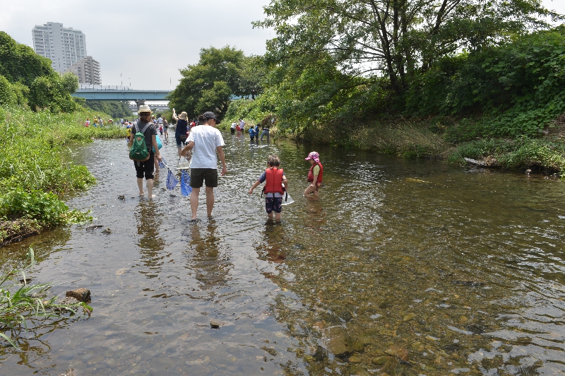多摩川や野川の水辺の生きものをタモ網を使って捕まえ、みんなで観察します。季節によって観察できる生きものが違うので、ときどき遊びに来て下さいな。たくさんの生きものがつかまえられるはずです。同時にそんな生きものたちが安心してすめるように、川にはどんな環境があったらいいのかも考えてもらえるとうれしいな。フィールドは多摩川板チョコ護岸、野川ベース。タモ網やライフジャケットなど水遊びの道具は全部お貸しします。